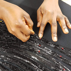This is a process whereby you are guided through choosing the right fabric and trimmings for your design. Our head designer will be on hand to give you advice and recommendation at all time in making the right decision. However we are happy to work with fabric you already have or you want to source for it yourself.